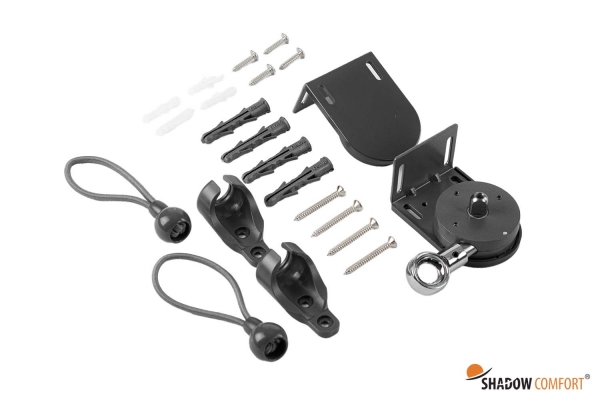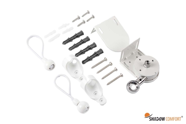 De buiten rolgordijnen zijn aan de onderzijde voorzien van een D-ring aan beide kanten van de onderbuis, waarmee je het rolgordijn eenvoudig met de bijgeleverde accessoires aan de vloer, paal of muur kunt vastzetten. De outdoor rolgordijnen zijn handmatig op en af te rollen met de meegeleverde draaistok.