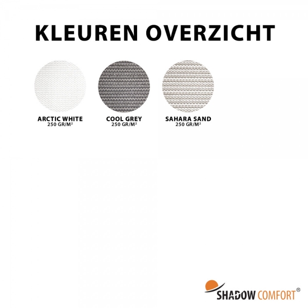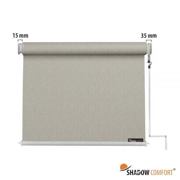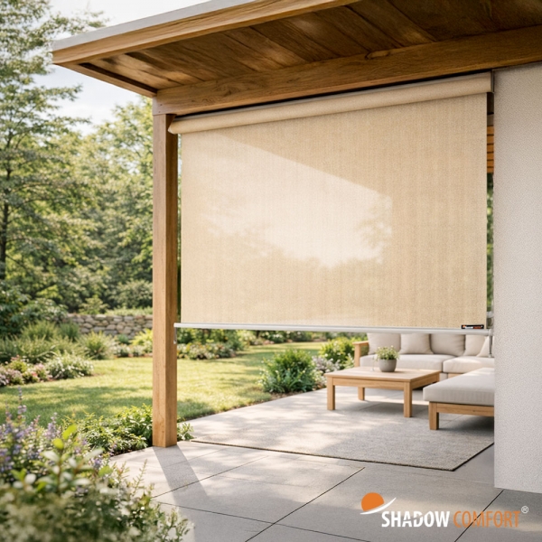 Shadow Comfort® rolgordijnen voor buiten zijn gemaakt van hoogwaardig UV gestabiliseerd waterdoorlatend HDPE materiaal. Hierdoor kunnen onze rolgordijnen het hele jaar door buiten blijven hangen en zijn perfect voor zonwering bij jouw terras, pergola, overkapping of ramen.