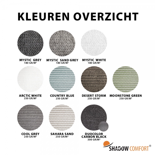 Een schaduwdoek rechthoek 2x4 biedt een smalle, maar lange schaduwstrook die perfect is voor veranda’s of langwerpige buitenruimtes. Het duurzame HDPE-materiaal laat lucht en regenwater door en is schimmelbestendig. Bevestiging is eenvoudig dankzij de sterke RVS ogen op de hoeken. Let er wel op dat schaduwdoeken een curve hebben, zodat het doek goed opgespannen kan worden.