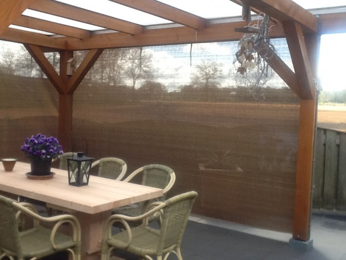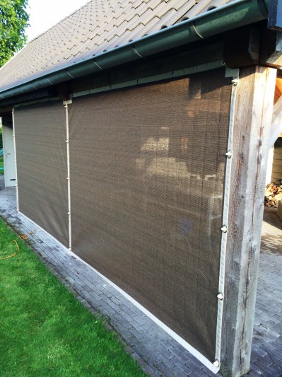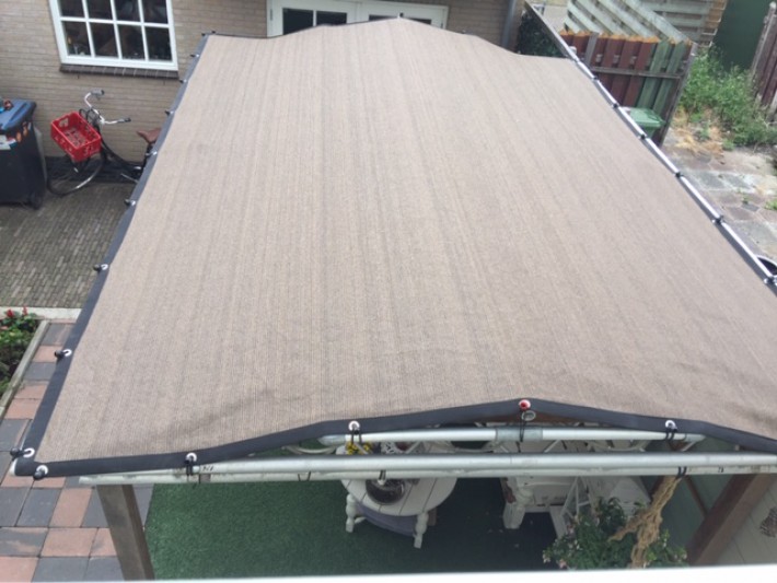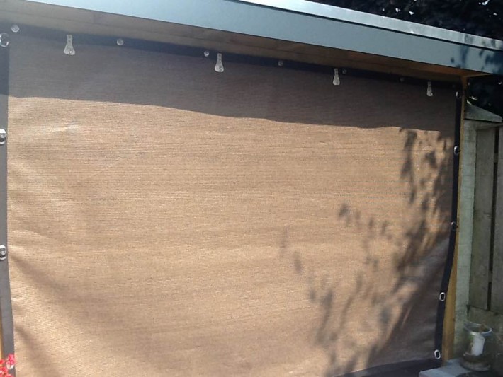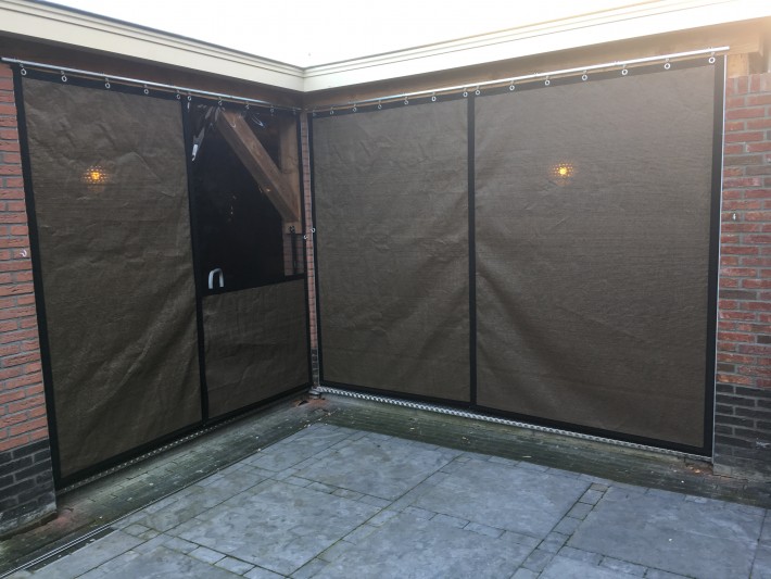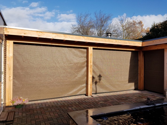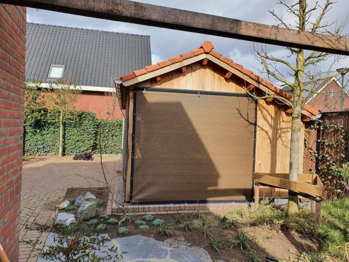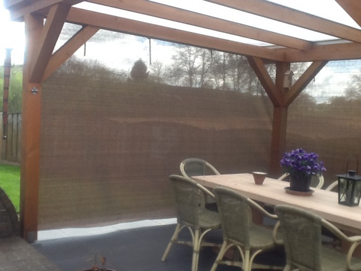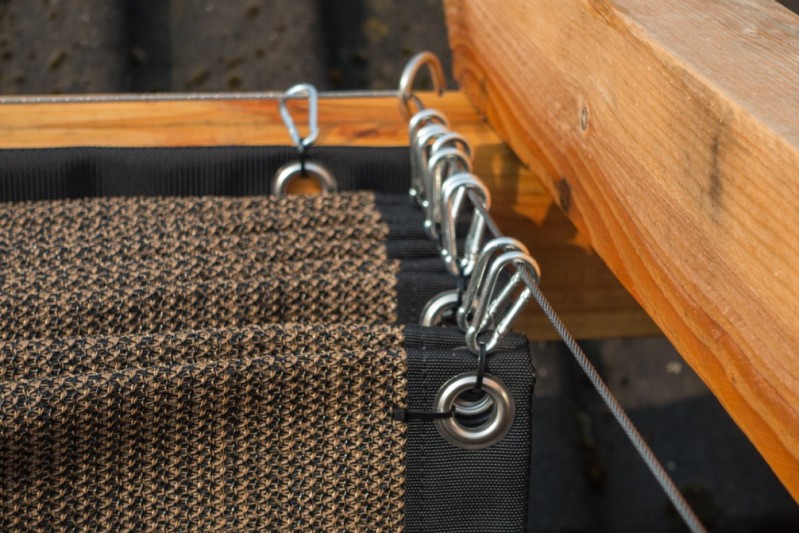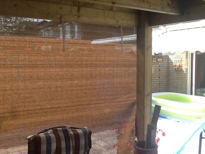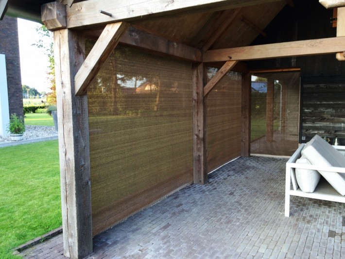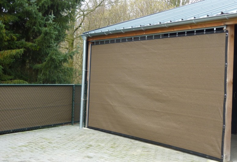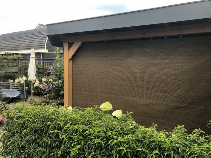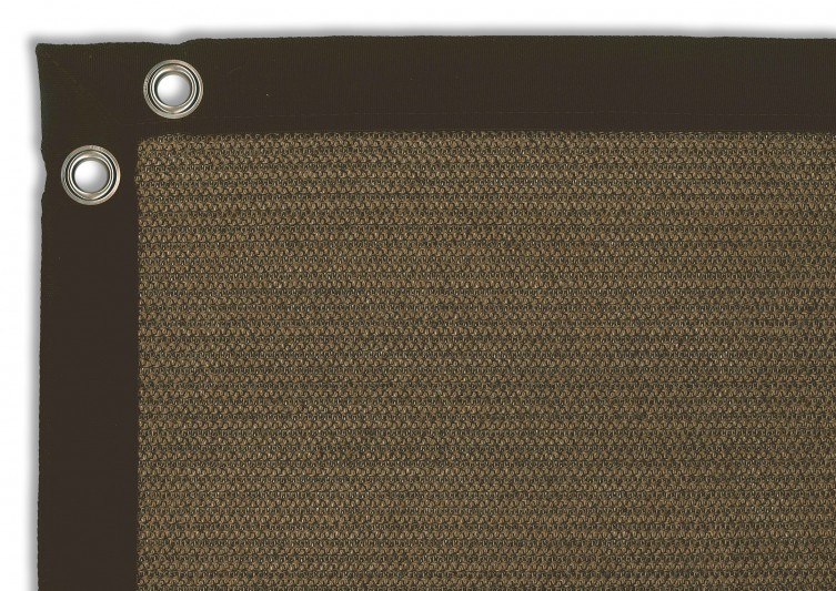Een mooie donkerbruine warme tint geweven in combinatie met een zwarte draad. Door de weving van tape- en monofilament draden met een gewicht van 280 gr/m2 is ook dit kwalitatief hoogwaardige doek voorzien van een hoge schaduwfactor van 92% en windreductie van 90%. Onder andere zeer geschikt voor zonwering met enige transparantie naar buiten toe.