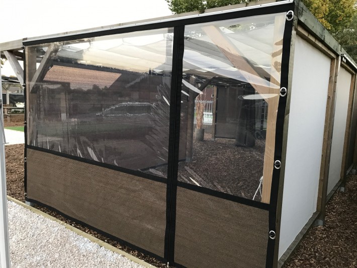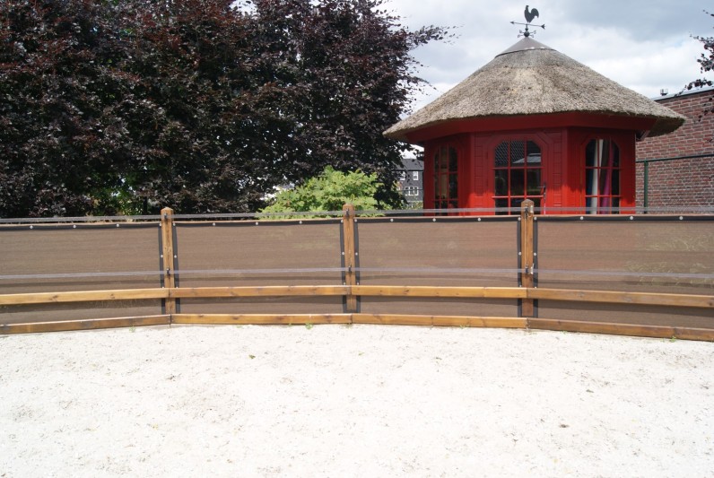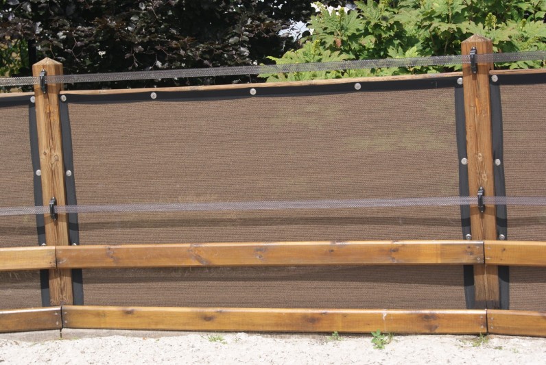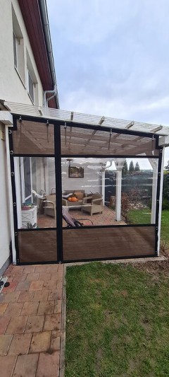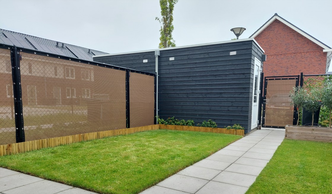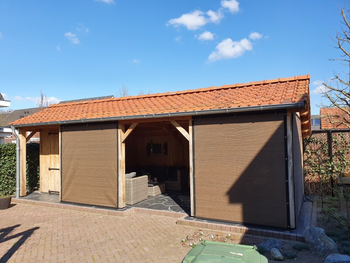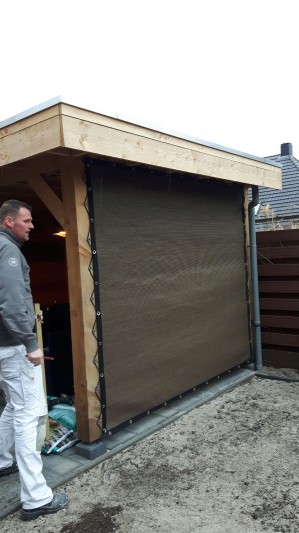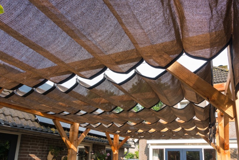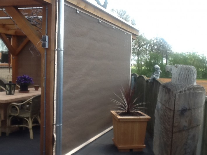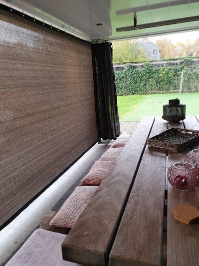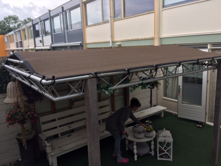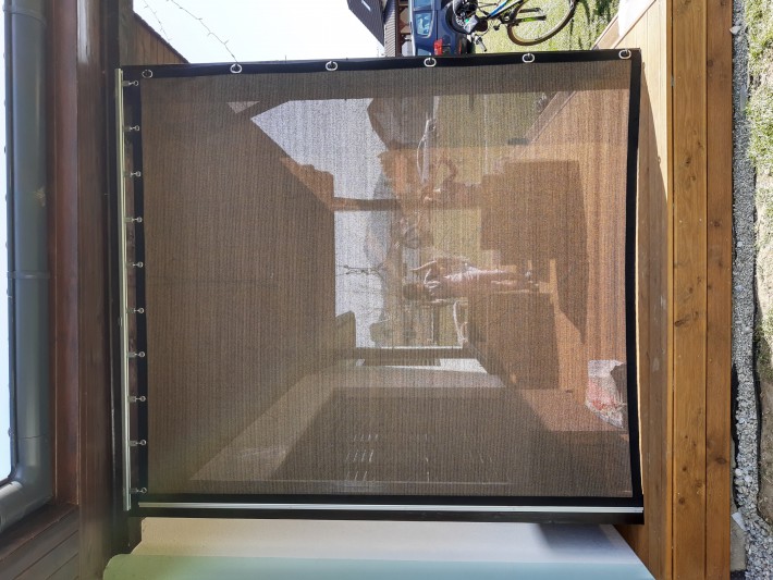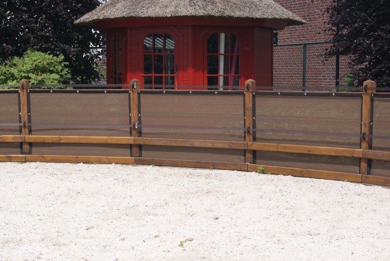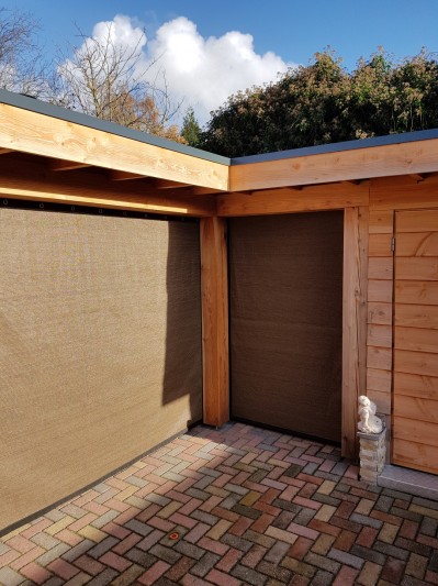 Een mooie donkerbruine warme tint geweven in combinatie met een zwarte draad. Door de weving van tape- en monofilament draden met een gewicht van 280 gr/m2 is ook dit kwalitatief hoogwaardige doek voorzien van een hoge schaduwfactor van 92% en windreductie van 90%. Onder andere zeer geschikt voor zonwering met enige transparantie naar buiten toe.