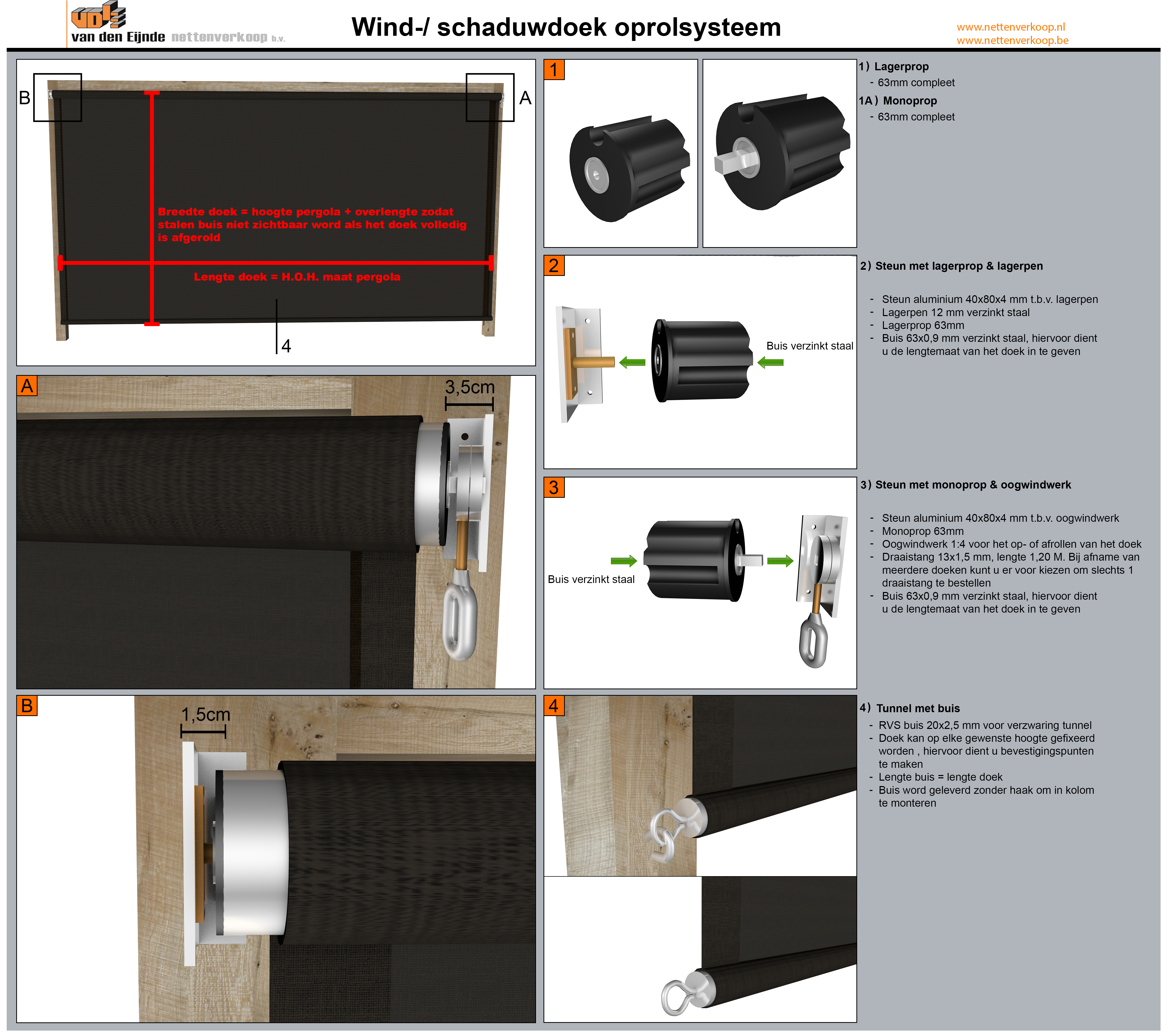 BIJ VRAGEN OVER DE BEVESTIGING GELIEVE EEN MAIL STUREN MET FOTO'S VAN DE SITUATIE OF EEN TEKENING VAN HET VERANDAZEIL HOE U DIT HET LIEFST WILT BEVESTIGEN/SAMENSTELLEN.